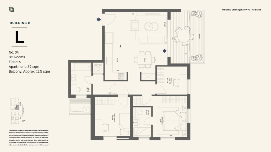 No. 34Rooms: 3.5Floor: 6Apartment: 82 sqmBalcony: Approx. 12.5 sqm