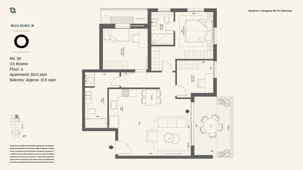 No. 38Rooms: 3.5Floor: 6Apartment: 80.5 sqmBalcony: Approx. 12.5 sqm